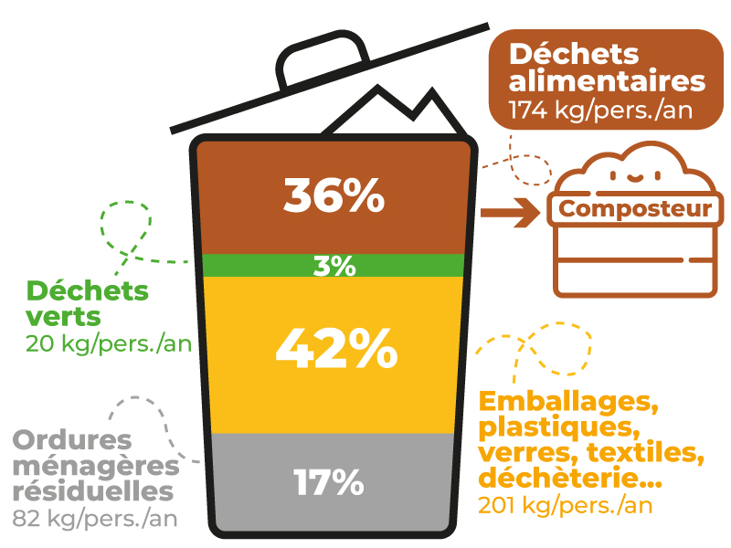 moins de déchets à transporter et à traiter = moins de gaz à effet de serre et réduction des coûts de gestion des déchets.