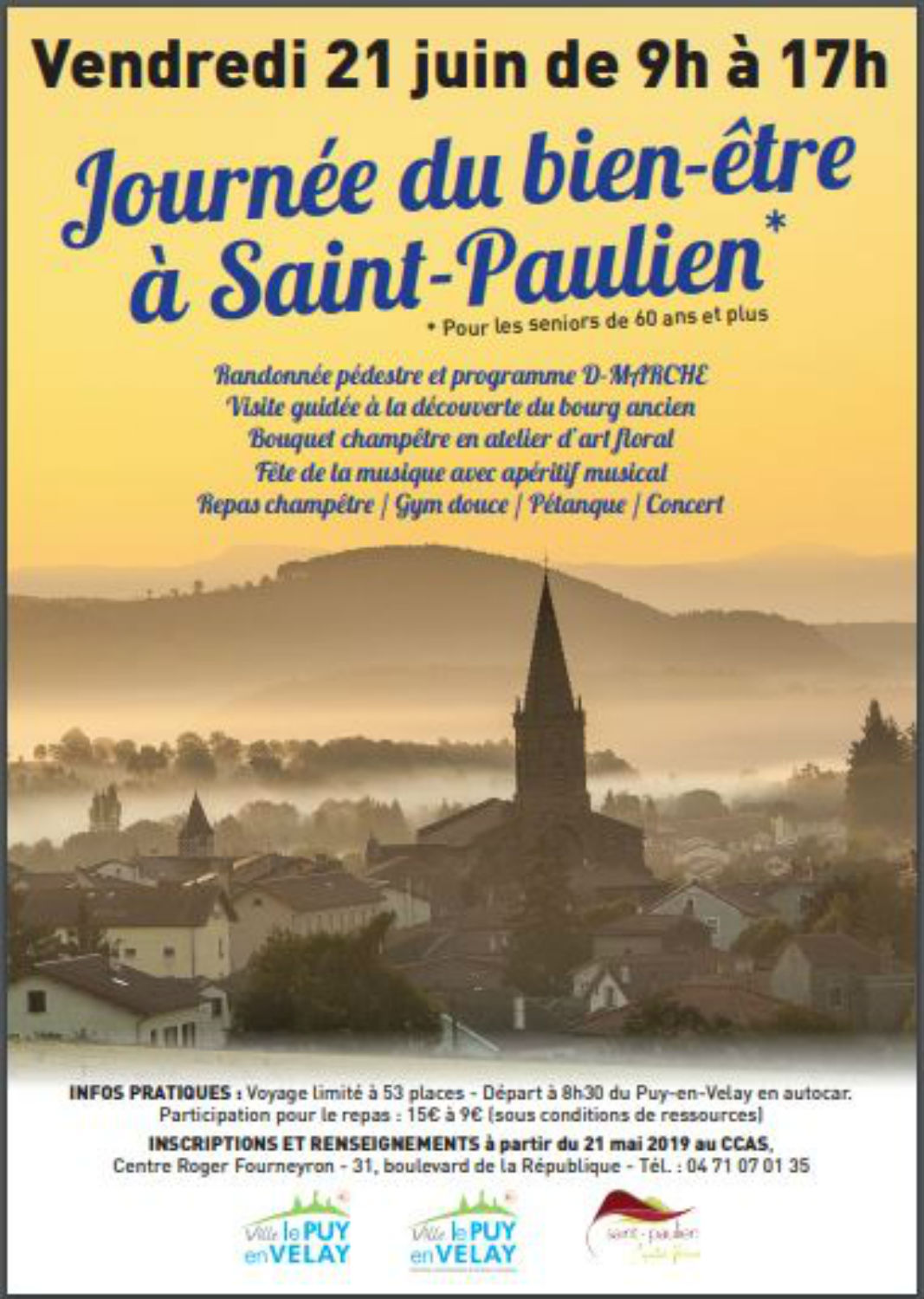 Inscriptions et renseignements à partir du 21 mai 2019 au CCAS, Centre Fourneyron, 31, bvd de la République – tél: 04 71 07 01 35
