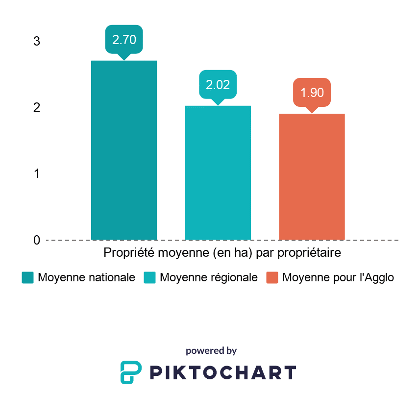 - Celle-ci est inférieure à la moyenne nationale (2,70 ha) et régionale (2,02 ha).